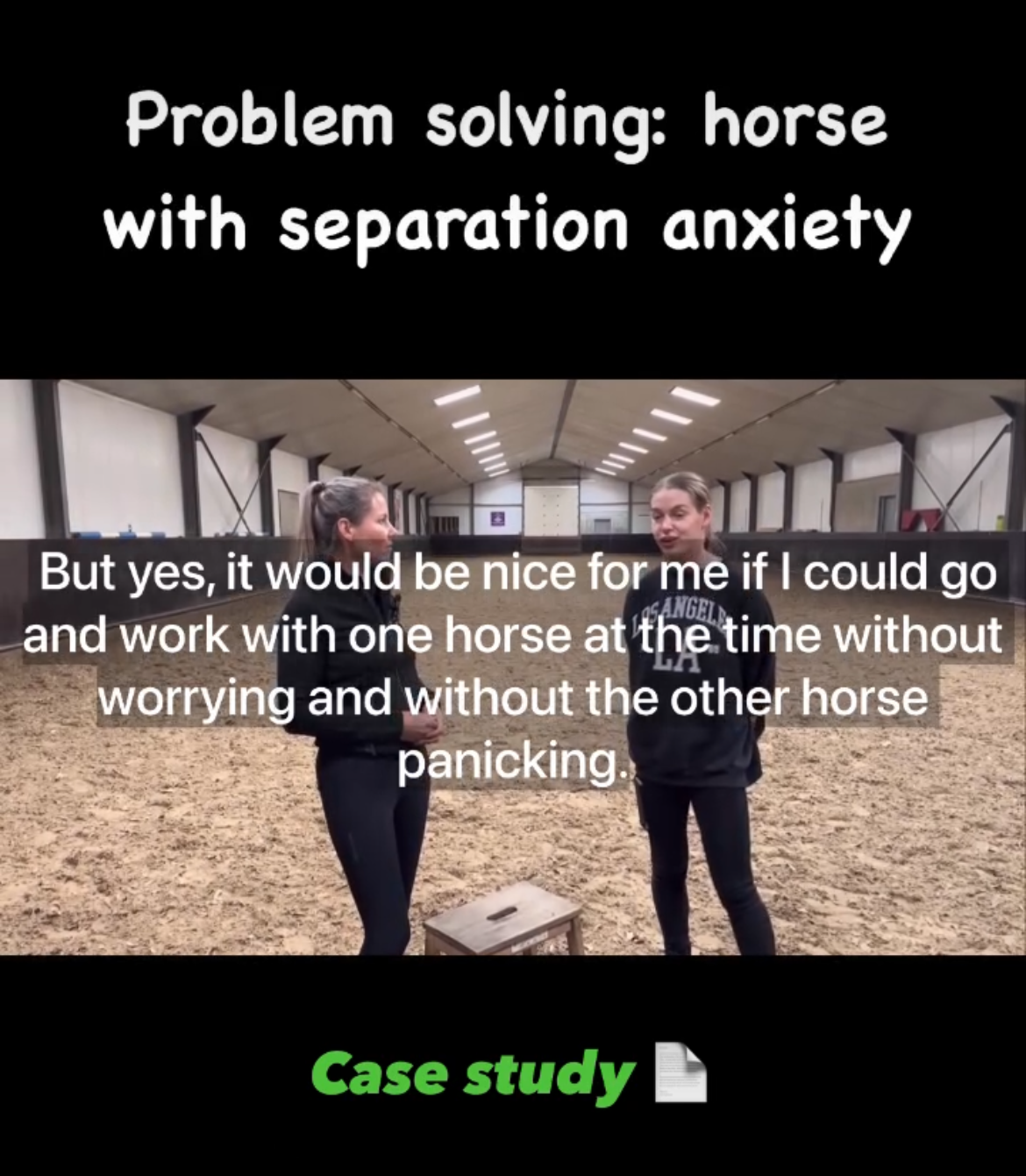 Ontvang de gratis video waarin verlatingsangst wordt opgelost. Een manier die voor alle paarden werkt, zonder ze fysiek of mentaal uit te putten. Leer vandaag nog hoe wij paarden kunnen helpen van verlatingsangst af. De video laat je direct zien hoe je vandaag nog start met een zeer doeltreffende oefening. Klip op de knop hieronder.